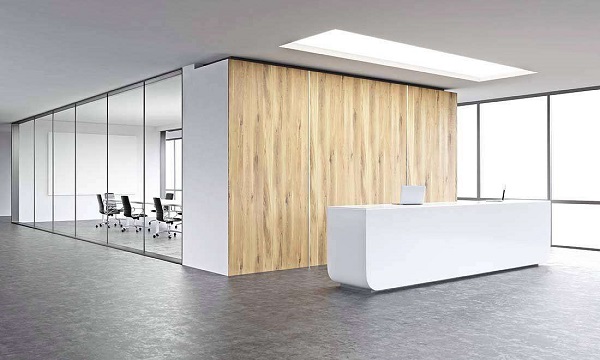 辦公室設(shè)計裝修前要先將辦公室各功能區(qū)域分配好,避免辦公室裝修時的浪費。在后續(xù)的辦公室裝修設(shè)計中對于隔斷的使用,推薦玻璃這一材料,既符合主流審美,也與極簡的風格相配。